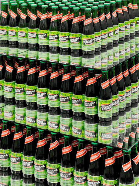 Superflex’s iconic project Guarana Power (2003) is a collaboration with a Guaraná farmers' cooperative in the Amazon Forest. Superflex and the farmers worked toward creating their own guaraná drink called Guaraná Power. The project was established as a political response to the actions of certain multinational corporations whose monopoly on the procurement of guaraná seeds had reduced the price for the raw material down by 80% while the costs of their products had increased exponentially. Superflex’s design of the guaraná drink bottle used the original emblem of the drink with a blacked-out Guaraná Power logo placed on top of it. The artwork encompasses everything from the initial production of the seeds by guaraná farmers to the global advertising of the mainstream-brand drink. The project facilitated discussions around brand value as a global political power that overtakes the production of local farmers.