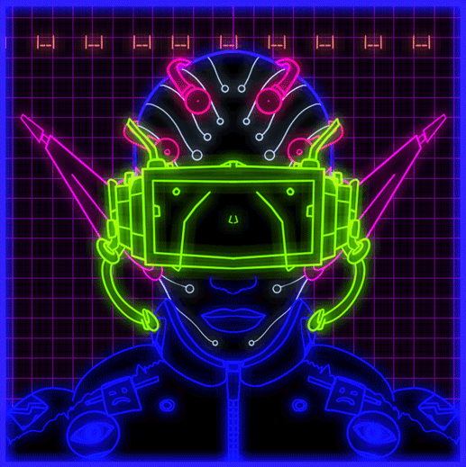 Among the NFT artworks in Prosthetic Reality V2 are a selection of Sutu’s Neonz — a separate project he created simultaneously that featured a limited collection of 10,000 unique avatars designed by Sutu using hand drawn static and animated art inspired by cyber culture. The collection, which sold out in October, is the first clean NFT 10k project on the Tezos blockchain.