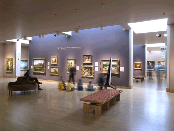 The conservative taste of Charles Frye and his absolutism in favour of representational art was adhered to for decades under the direction of Walter Greathouse, followed by Ida Kay Greathouse – widow of Walter and his successor as director of the gallery. Following Ida’s retirement in 1994, the museum expanded its physical space and artistic representation. Major renovations in 1997 and 2012, by Rick Sundberg and design collaborator Alan Maskin of Olson Sundberg Kundig Allen Architects, have reinvigorated the space. Bright and airy walkways, natural surfaces, and sculptural features give the chambered floorplan an elemental feel. Each angle is purposefully manipulated to enhance the art-viewing experience; as Alan Maskin states, “Light levels are designed to diminish at five distinct intervals as the visitor moves from outside to inside through the entry sequence.”