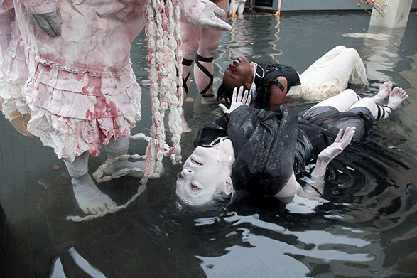 Exhibits have also broadened in scope, including since the 1990s work by female artists and artists of non-European descent and exhibitions of socially progressive content, abstract art, and mixed media. In celebration of the museum’s 60th anniversary, Chinese artist Liu Ding exhibited his first American solo show, Liu Ding’s Store: Take Home and Make Real the Priceless in Your Heart, exploring value and consumerism. In 2010 the Seattle-based performance group Implied Violence shot arrows into a wax chair and staged an interpretive dance in the museum’s reflecting pool.