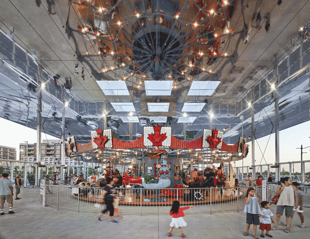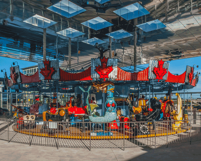 In the centre of Downtown Markham stands a beacon of sustainability and a testament to public art. Aptly named “The Pride of Canada,” the beacon of cultural engagement is a 50-foot wide, expertly crafted and rideable piece of art. When The Remington Group, one of Canada’s premier development firms, began developing this brand new city centre just north of Toronto, they commissioned the work to stand as a centrepiece. The combined efforts of sculptor Patrick Amiot, artist Brigitte Laurent, and world-renowned carousel expert Daniel Horenberger produced the kinetic masterpiece you see today.