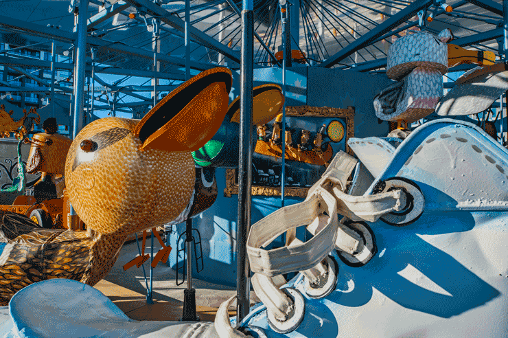 Unlike other artworks, the Carousel is meant to continually be in motion, a dynamic story to be viewed from all sides. How did this emphasis on movement and temporality inform your design?