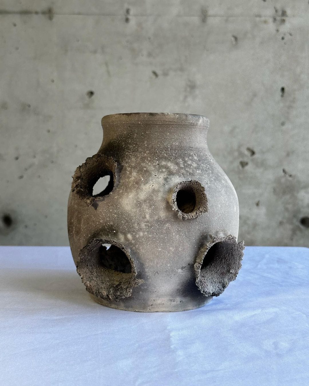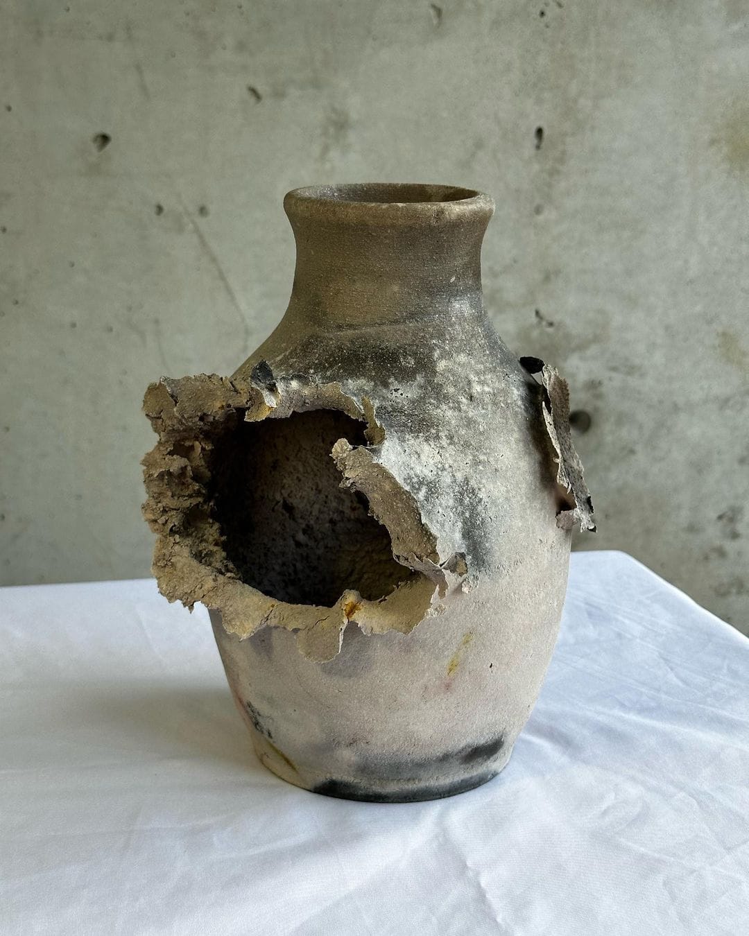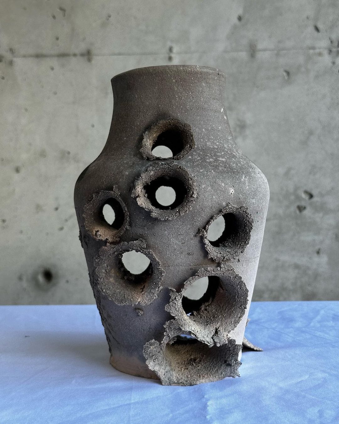 Chinese-American ceramicist Stanley Tong has been creating a series of vases titled Thoughts and Prayers to protest the indifference of US regulatory bodies towards gun violence. To create each piece, Tong first sculpts wet clay into different shapes of vases before proceeding to fire at them with real guns. After being baked in the kiln, the final pieces appear torn by bullet wounds, immortalizing the effects that guns have made on the vase’s 'bodies'.