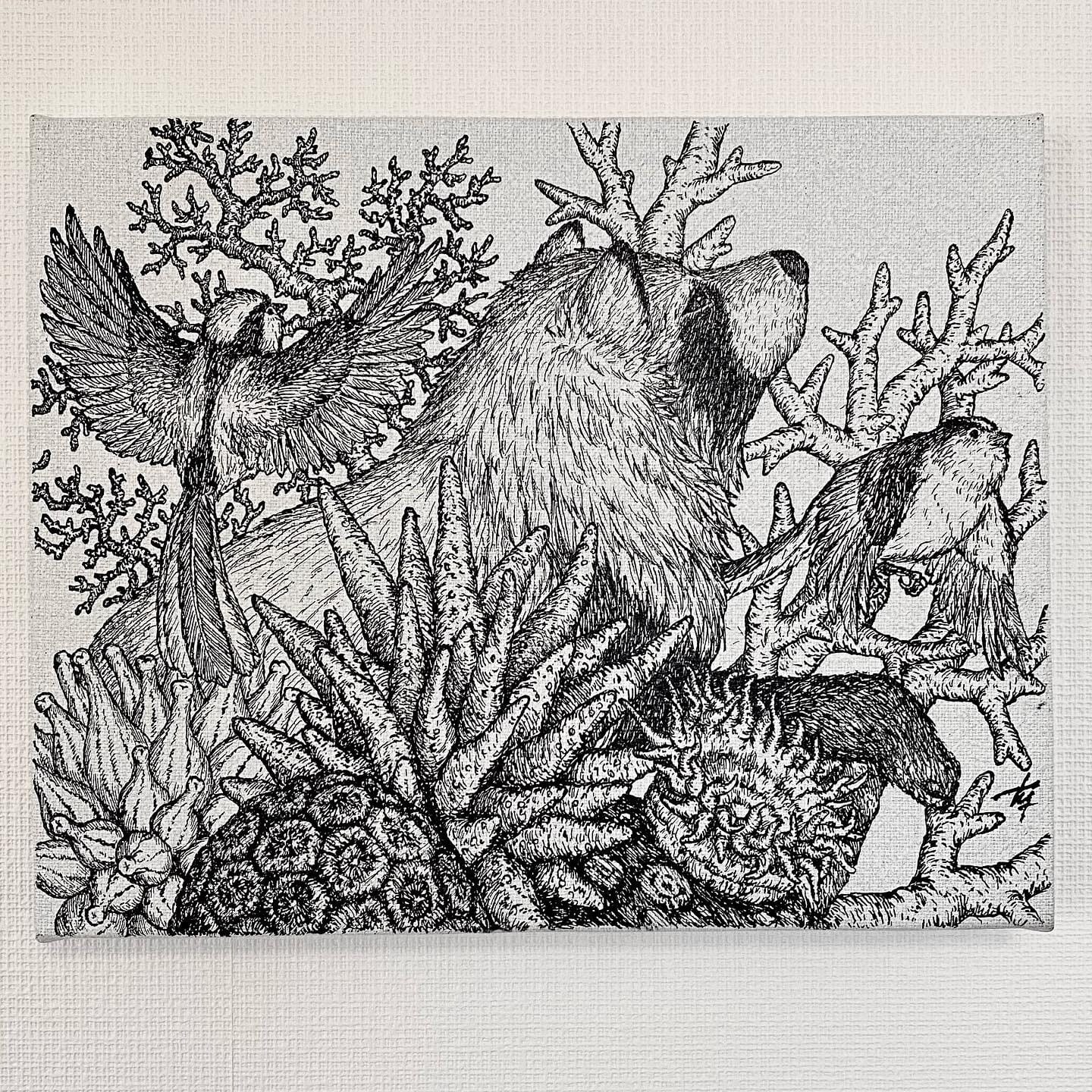 Murayama’s pen on paper pieces embodies a posthuman consciousness perfectly, as it shows that humanity has the capacity to also empathize and understand nature. This is exemplified by how pen and paper, man-made tools, are able to render nature realistically, a symbol of humankind’s capacity to empathize with nature and find ways to exist in harmony with it. Murayama also goes deeper into this sentiment through his series A Piece of Harmony, where he has drawn together in one paper species of animals and plants that would not be found together in their natural habitats.