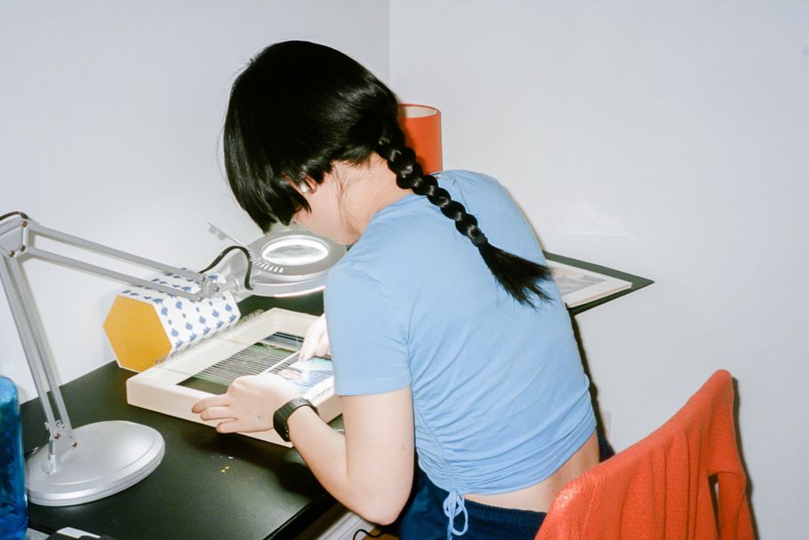 Photo-weaving is a technique I ended up with after doing a lot of exploration. I have this Chinese astrology calendar with my birth year. It’s just strips of paper woven together with a machine. That’s an object I wanted to reinvent, and that’s where I came up with photo-weaving. It was a mix between finding a new way of presenting a two-dimensional artwork and connecting with the photographic archives and the touristic objects my parents brought back from China, and how I can interpret them.