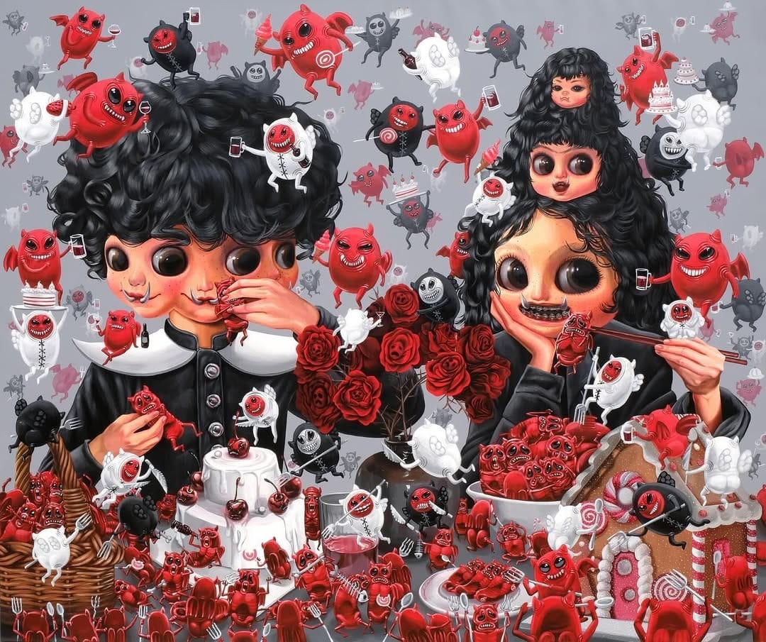 At first glance, the work of Thai artist Wanda Chaima appears to be a celebration of childhood whimsy. Her canvases are awash in candy-colored hues, populated by characters with wide eyes, animalistic ears, and exaggerated, cartoonish expressions. They invite the viewer to smile, to lean in, to feel safe.