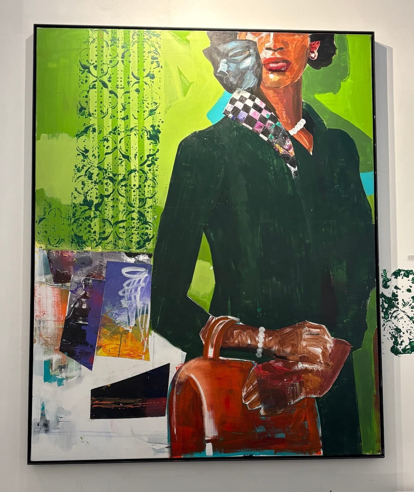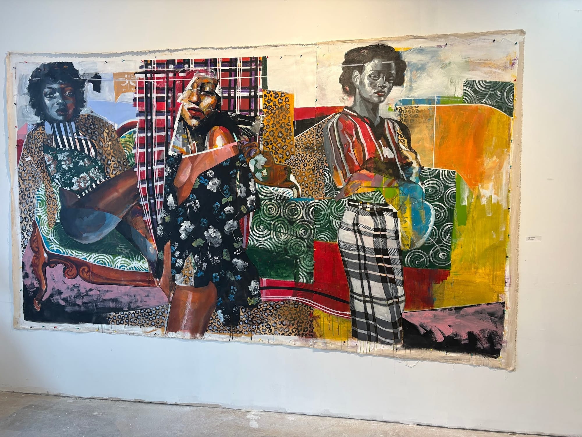 Nigussu’s work clearly evokes a sense of humanism, a term he claims for himself. Throughout his most prominent works on display in his gallery, we see faces staring through and across their respective pieces. We see the presence of Black women lounging, looking, and posing.
