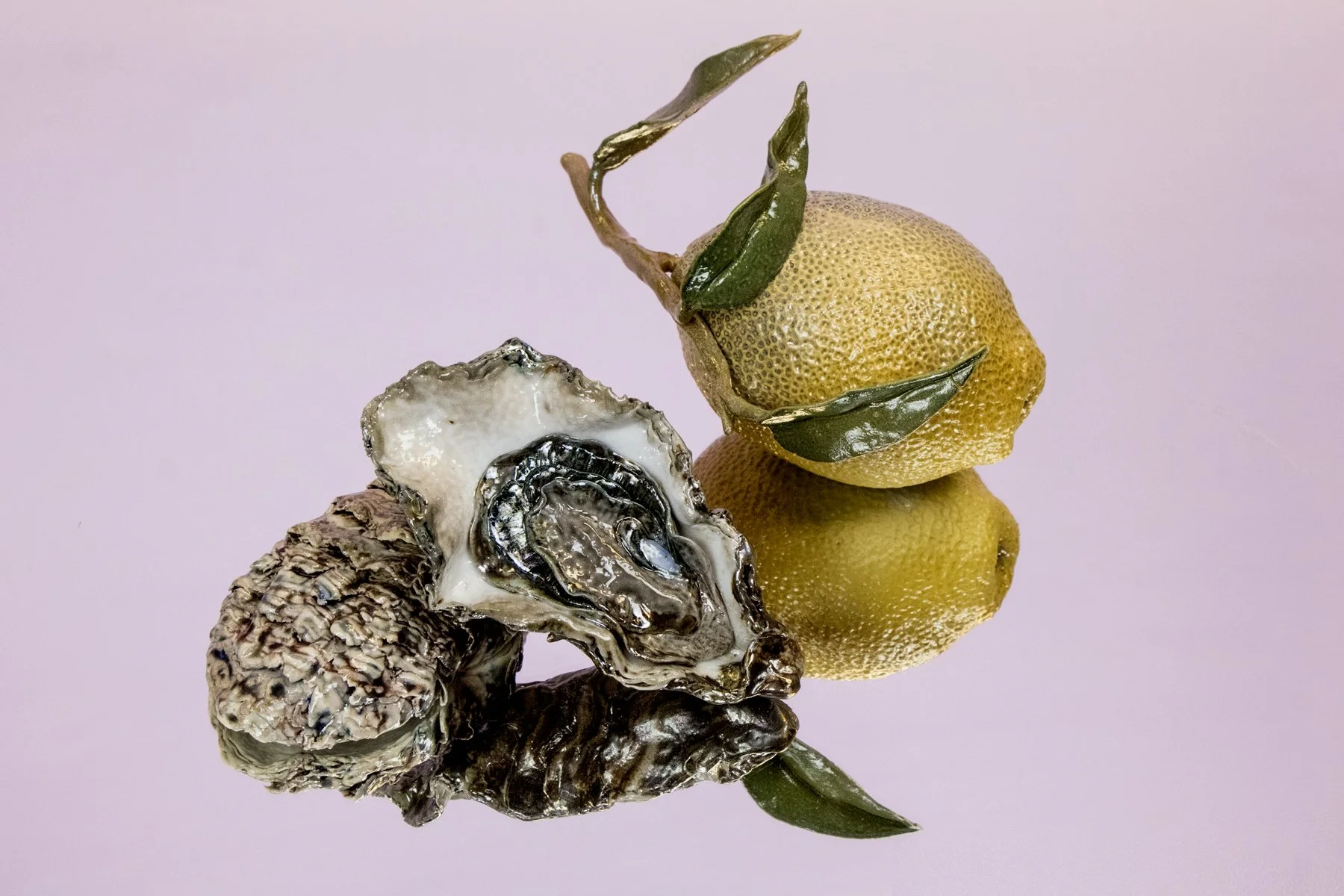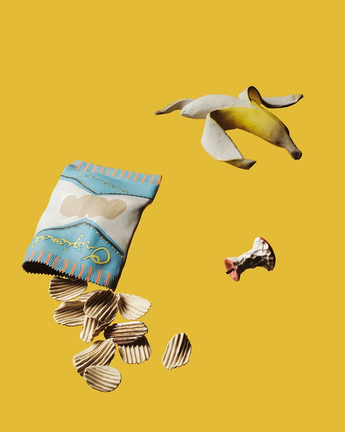 On a gallery pedestal, a banana peel lies curled and blackening, discarded as if someone missed the bin. Next to it sits a dried citrus rind, its texture pitted and familiar. The viewer’s instincts would tell them to look away, to categorize these objects as refuse. But if they were to reach out to touch them—though they shouldn't—they’ll find the all too familiar cold, hard and smooth surface of high-fired porcelain.