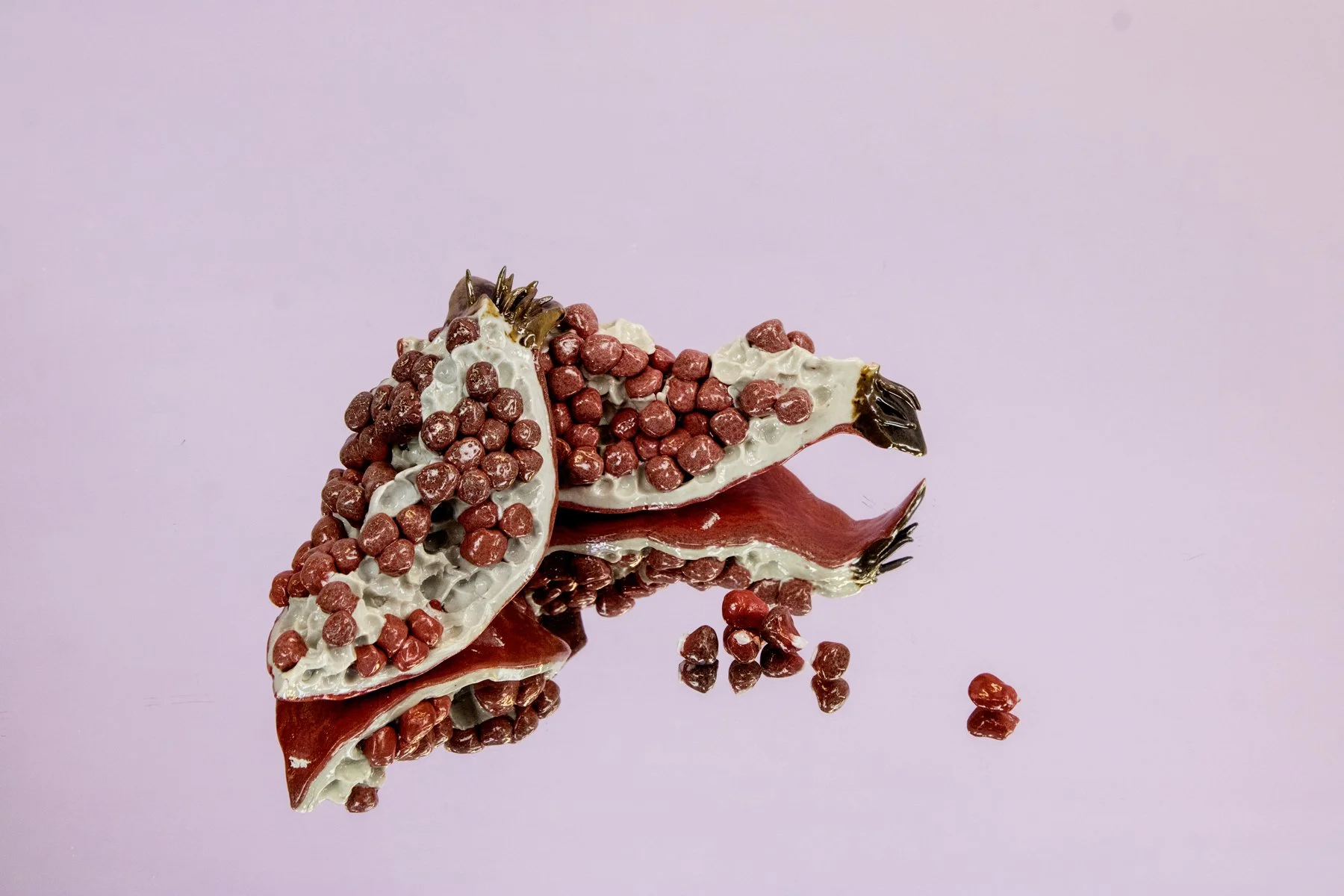 The genius of Trompes lies in how it allows for the apotheosis of overlooked remnants of daily food consumption. Lloyd hand-sculpts hyper-realistic replicas of food waste, capturing the intricate textures of their decomposition. Her rendering of ephemeral objects—that usually rot and vanish within days—into ceramic, a material that can last for thousands of years, allows her to flip the hierarchy of value. Here, she has taken the most worthless item in a household (garbage) and treated it with the same technical reverence usually reserved for fine vases or tea sets.
