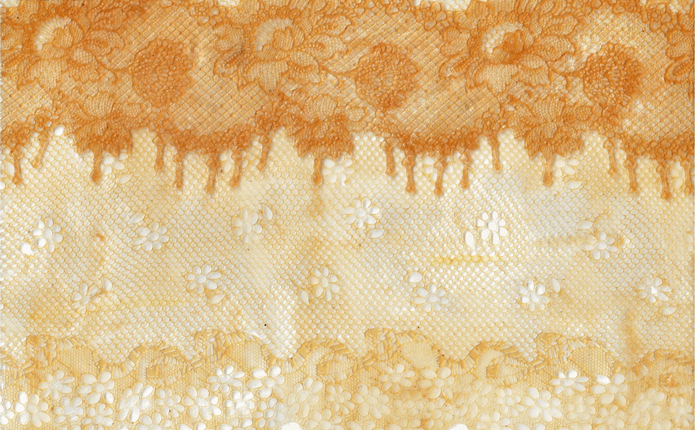Li continues to explain her process in the Chelsea College of Arts Showcase. She stated that she “followed and tracked what happens to the waste fats and oils by thinking through making—aiming to change perceptions of fat as a valuable resource, transforming waste fat, considered disgusting, into delicate and desirable decorative and lacy surfaces and turned into wearable garments.”
