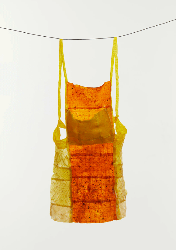 Her pieces aim to grow awareness about food inequalities and consumption, with the forethought of using bio-integrated materials. Her graduate collection, FATWEAR, traverses the intersection between fashion and food waste systems.